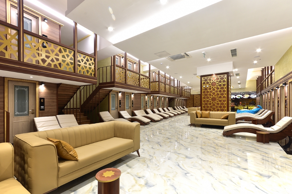 2500 m2 alana kurulmuş olan nezih mekanımız; Türk Hamamı, Spa, Sauna Odası, Buhar Odası, Olimpik Yüzme Havuzu, Jakuzi, Macera Duşu, Kar Çeşmesi, Kova Duş bölümlerinden oluşmaktadır. Ayrıca bünyemizde bulunan profesyonel ekibimiz tarafından Kese ve Masaj Hizmeti de yapılmaktadır.