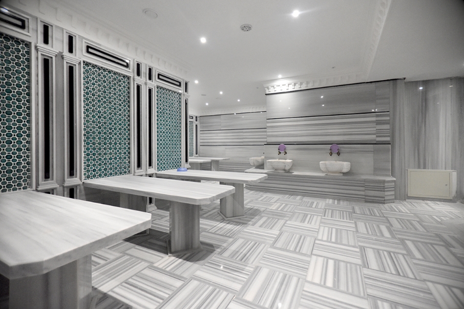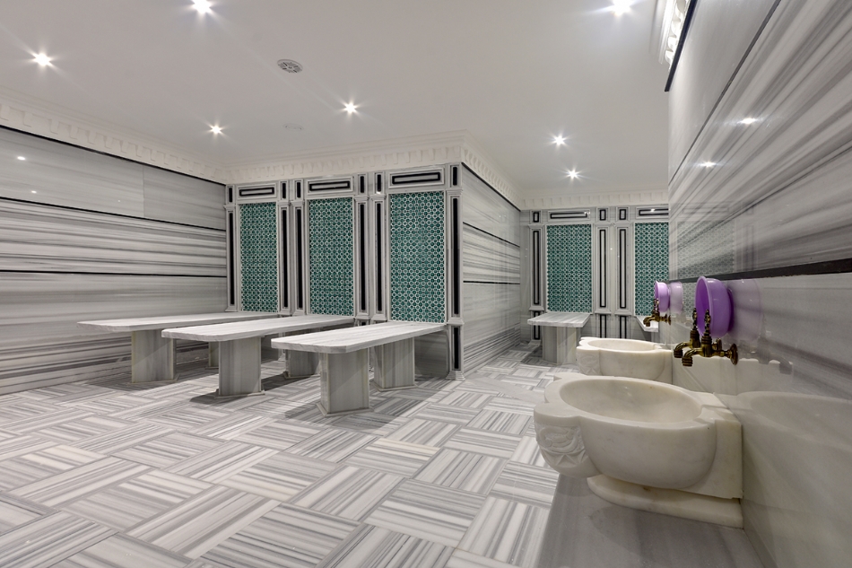 2500 m2 alana kurulmuş olan nezih mekanımız; Türk Hamamı, Spa, Sauna Odası, Buhar Odası, Olimpik Yüzme Havuzu, Jakuzi, Macera Duşu, Kar Çeşmesi, Kova Duş bölümlerinden oluşmaktadır. Ayrıca bünyemizde bulunan profesyonel ekibimiz tarafından Kese ve Masaj Hizmeti de yapılmaktadır.